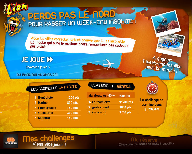 Venez découvrir le grand jeu organisé par Nestlé pour les céréales LION, "Rameute ta meute". Créé ton espace privé et partage des moments de pur plaisir à travers les 7 jeux qui se dévoilerons au fil des semaines. Le studio s'est occupé de la Direction Artistique du projet.